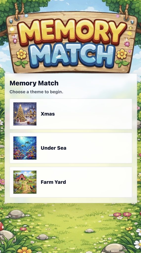 Just choose your theme and then simply turn 2 tiles over at at time and try to make pairs. All you need to do is remember where they all are. Sound simple? Try it..